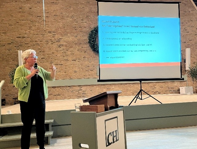 Op uitnodiging van de vereniging gaf Dolly Verhoeven, historica en bijzonder hoogleraar Gelderse geschiedenis (later emeritus) aan de Radboud Universiteit, een inspirerende lezing over 'Het ontstaan van Gelderland'.